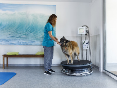 La physiothérapie combine les propriétés d’agents physiques (la pression, la chaleur, le froid, l’électricité, les ondes électro-magnétiques, sonores ou lumineuses) et d’éléments naturels (l’eau, la lumière) avec le mouvement à des fins curatives ou préventives. Elle propose une approche globale pour favoriser la récupération et le bien-être des animaux. Grâce à des techniques spécialisées telles que la thérapie par l’exercice ou la kinésithérapie, nos professionnelles aident vos compagnons à quatre pattes à retrouver leur mobilité et leur vitalité. Adaptée aux besoins spécifiques de chaque animal, la rééducation fonctionnelle pratiquée dans notre cabinet adopte une approche holistique, contribuant ainsi à améliorer la qualité de vie de nos fidèles amis.